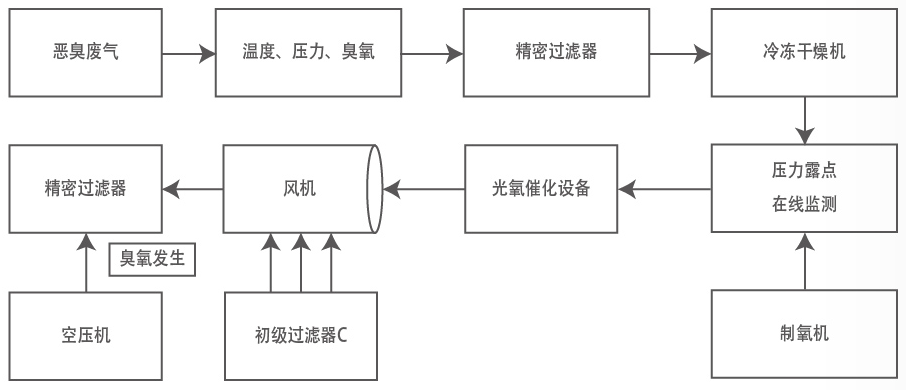 VOC有機廢氣處理的成套設(shè)備包括順序連接的等離子體和光氧催化反應(yīng)設(shè)備。其特點是等離子體催化器將等離子體技術(shù)與催化劑原位式結(jié)合,將特制的催化劑放置在等離子體產(chǎn)生區(qū)域內(nèi)。等離子體在催化劑上原位產(chǎn)生,可將催化劑和放電緊密結(jié)合,高效降解VOCs。此研發(fā)的催化劑和設(shè)備均已獲得國家專利各一項。單獨使用等離子體設(shè)備副產(chǎn)物O3和NOx比較多,因此將光氧催化設(shè)備置于等離子體設(shè)備的后面,經(jīng) 臭氧氧化、紫外光解與光催化氧化繼續(xù)降解有機物及副產(chǎn)物。此套設(shè)備可以大大優(yōu)化廢氣處理效率,對VOCs的去除率能達到90%。